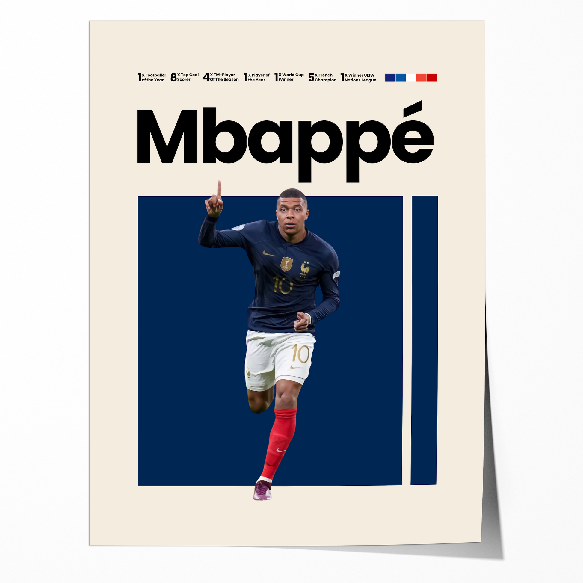 Poster Mbappe Ronaldo Messi Neymar Fußball Minimalistisch I Mid Century Modern I Wanddeko I WM Kunst I Frankreich Trikot I Kunstdruck ohne Rahmen