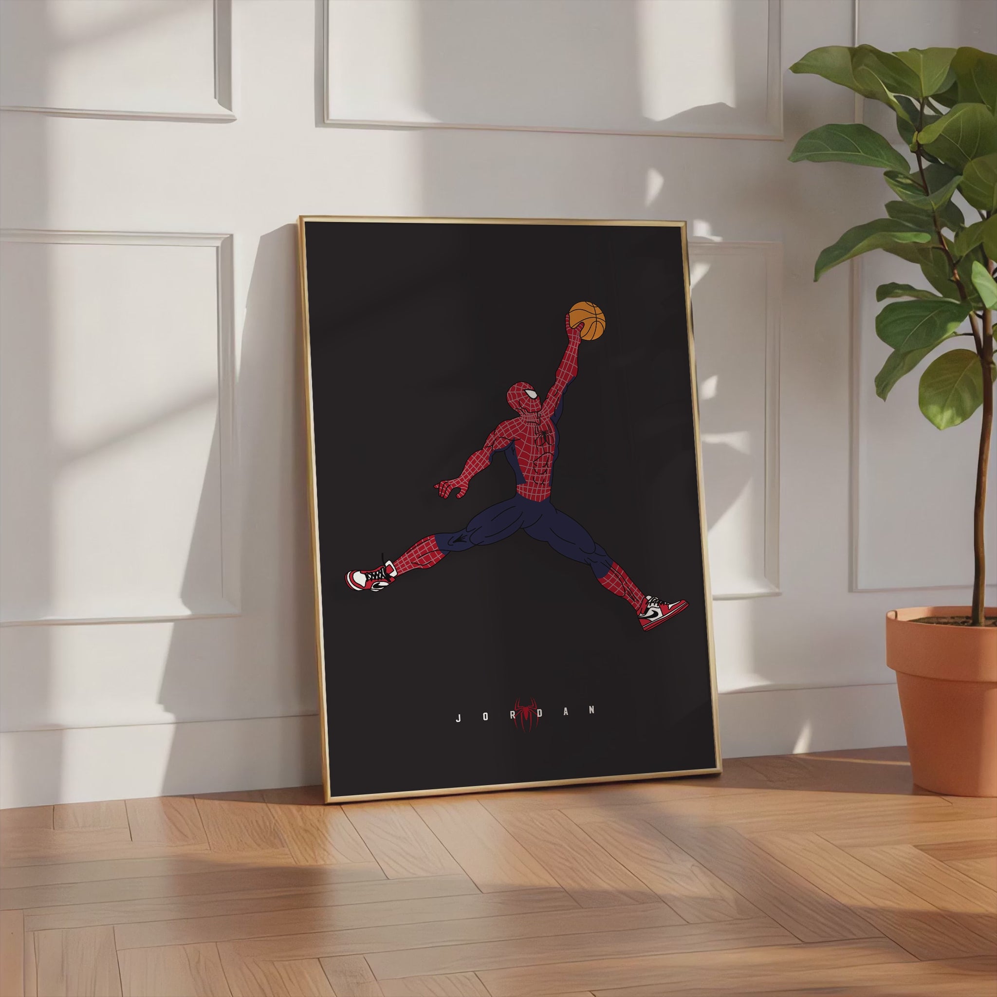Superheld Basketball Dunk Poster · Comic Stil Illustration · Pop Art Film Charakter Design · Print ohne Rahme