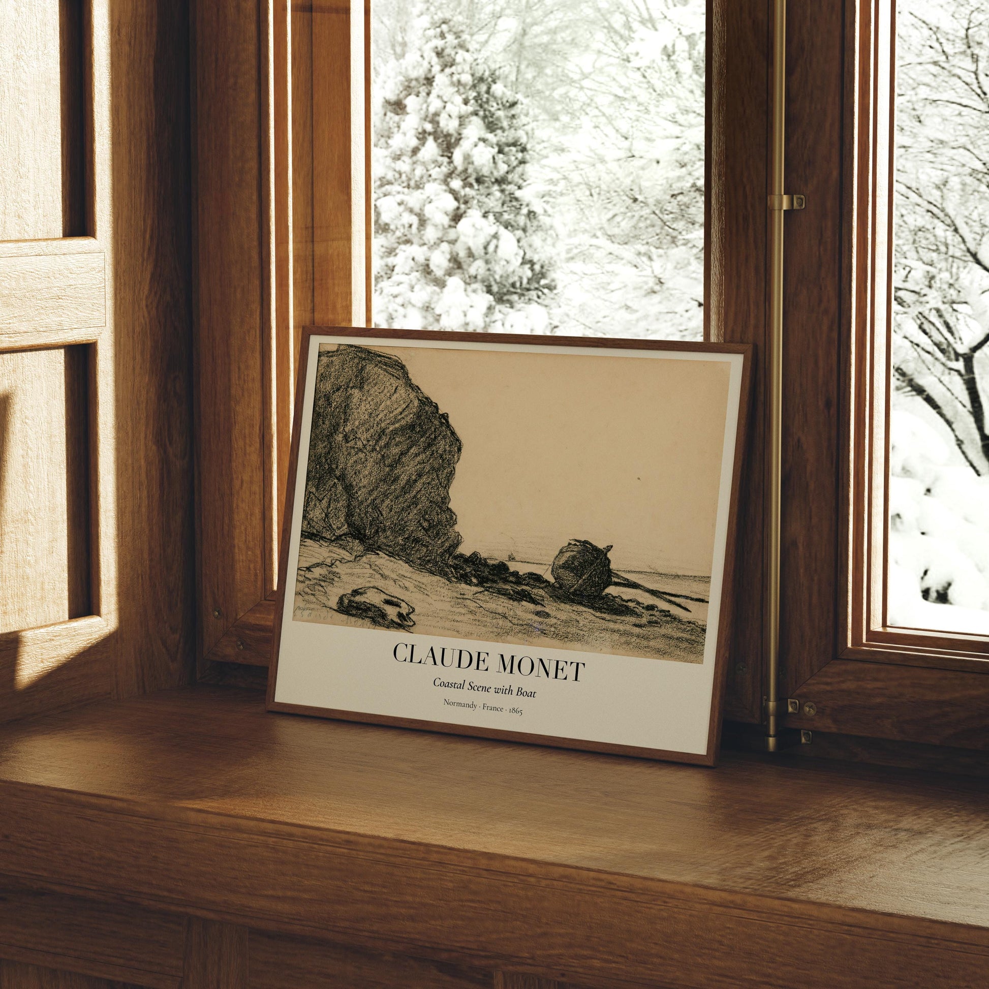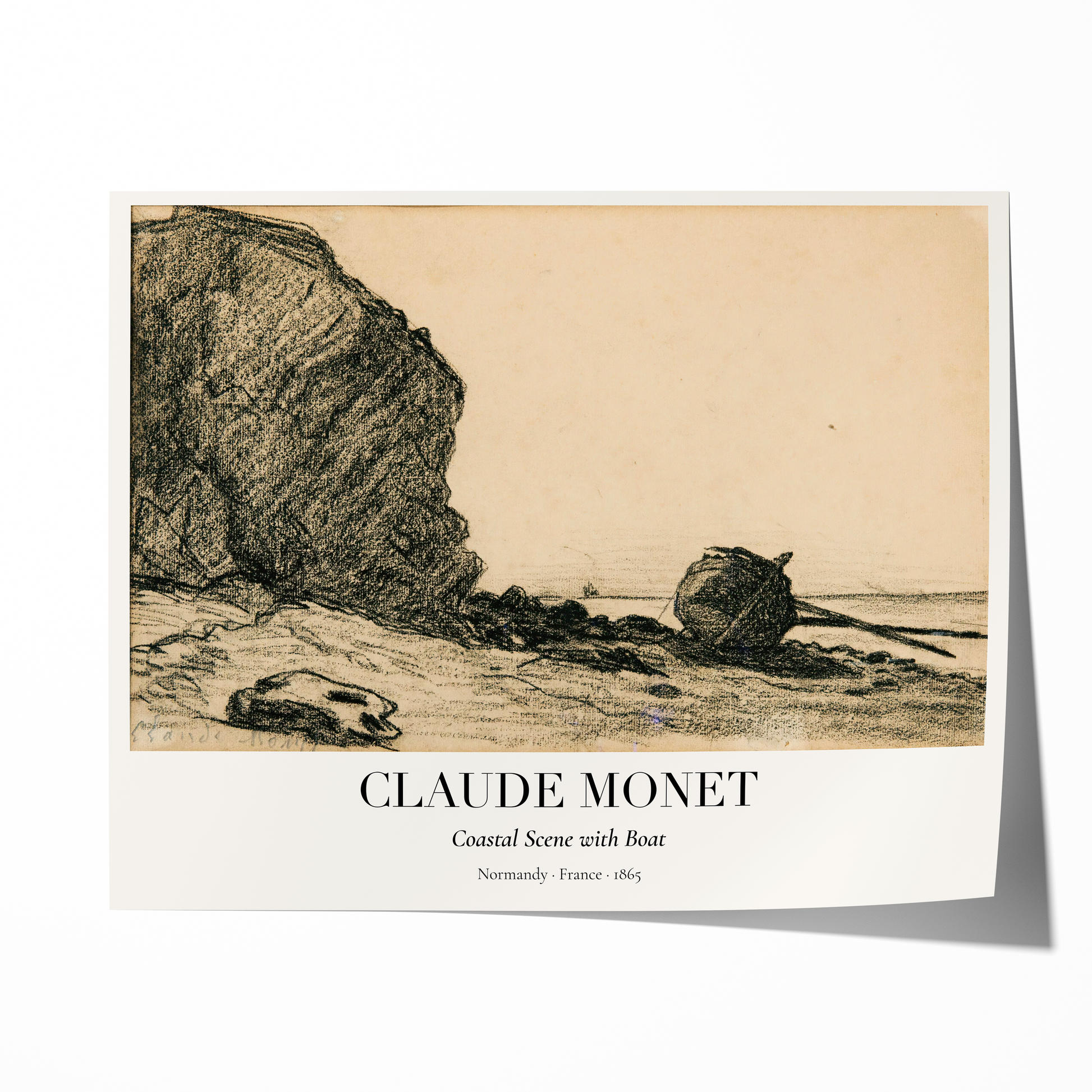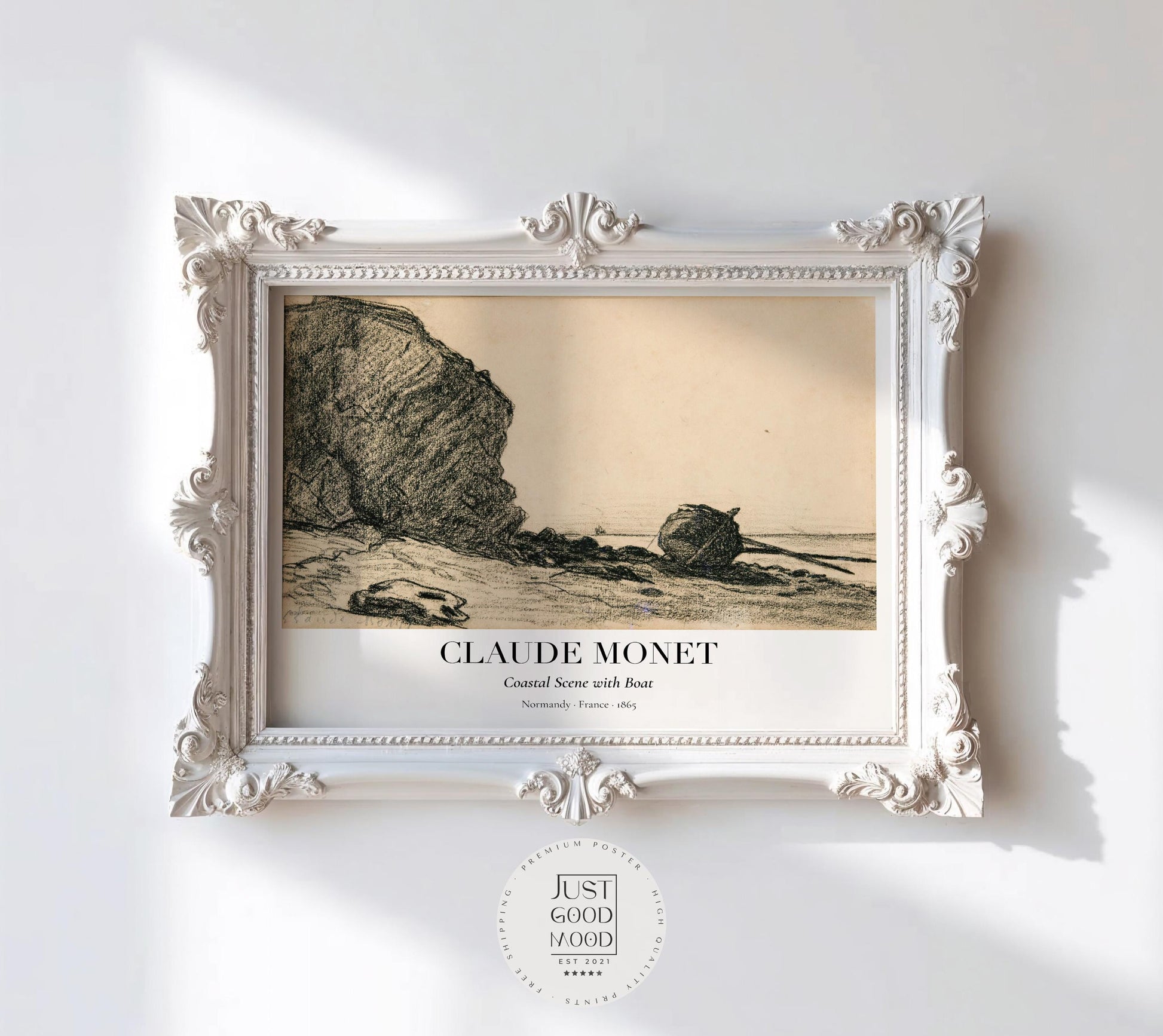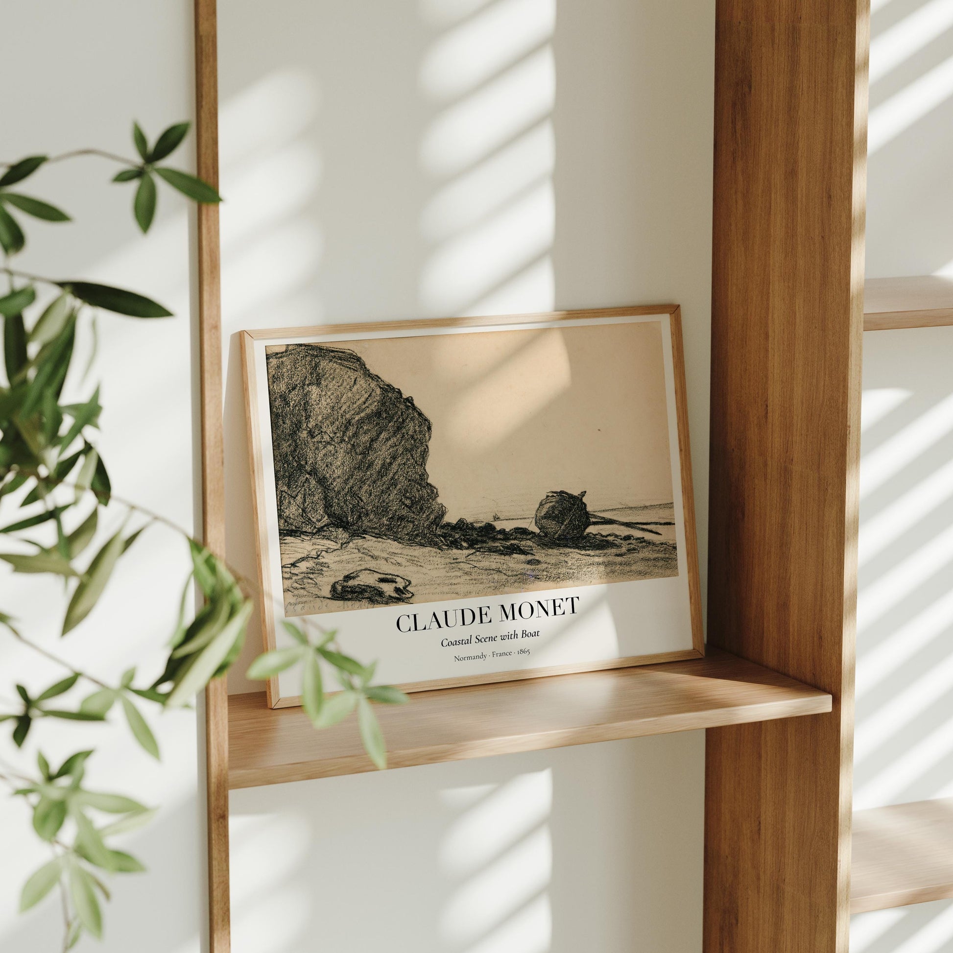 Claude Monet Zeichnung · Strand mit Boot ca. 1865 · Küstenstudie in Kohle · Vintage Kunstposter · Normandie Skizze · Druck ohne Rahmen