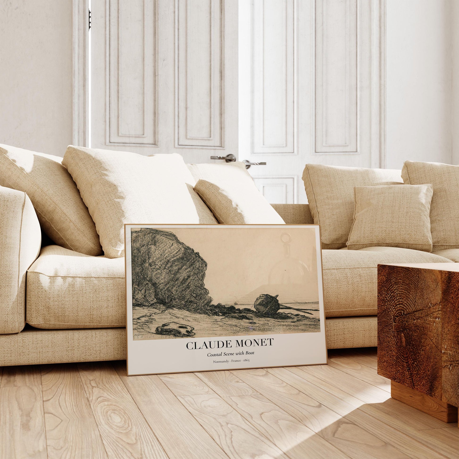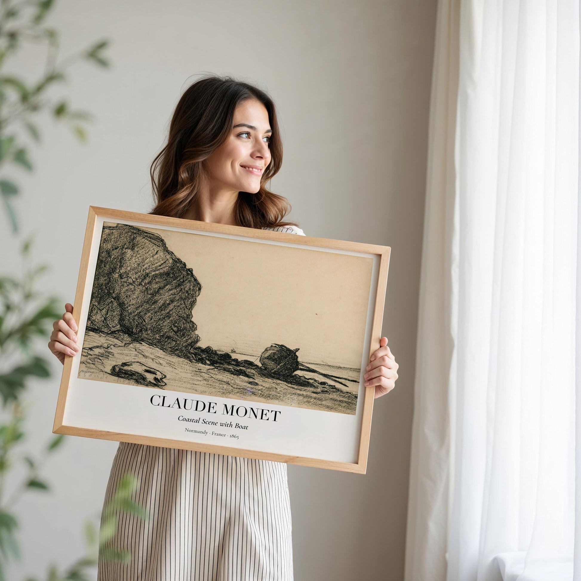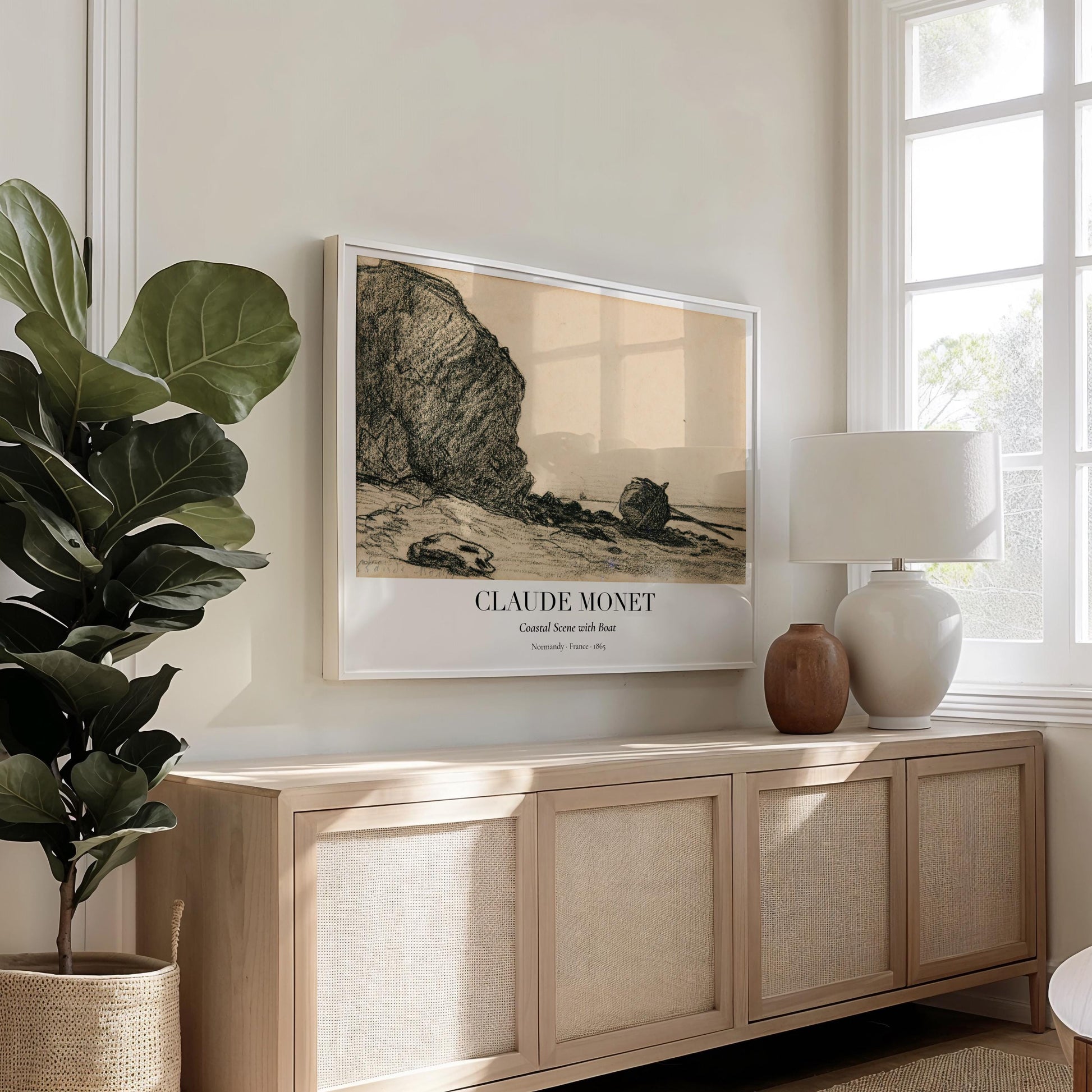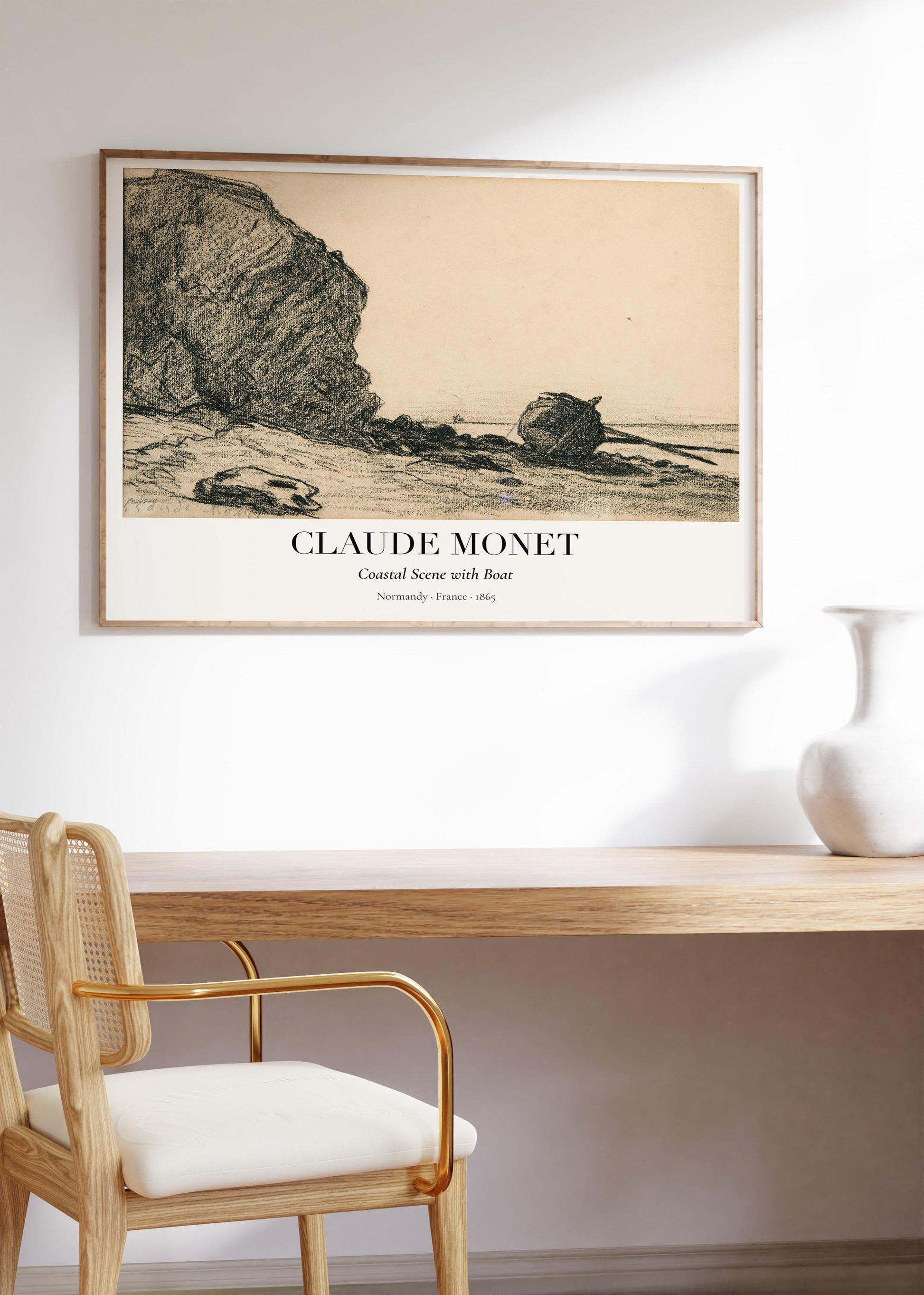 Claude Monet Zeichnung · Strand mit Boot ca. 1865 · Küstenstudie in Kohle · Vintage Kunstposter · Normandie Skizze · Druck ohne Rahmen