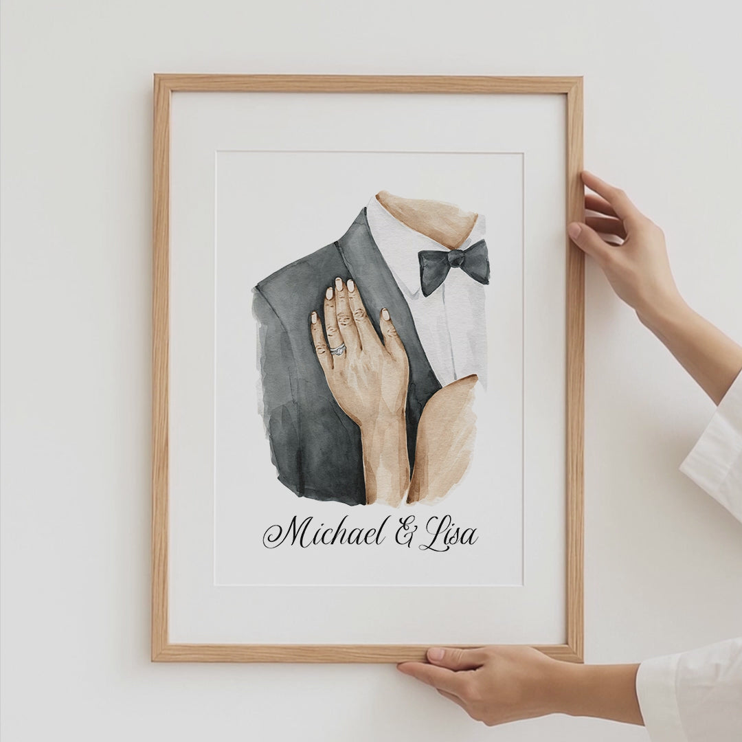Personalisiertes Hochzeit Poster · Geschenkidee · Paar Hände Illustration · Jahrestag Verlobung Liebe · Print ohne Rahmen