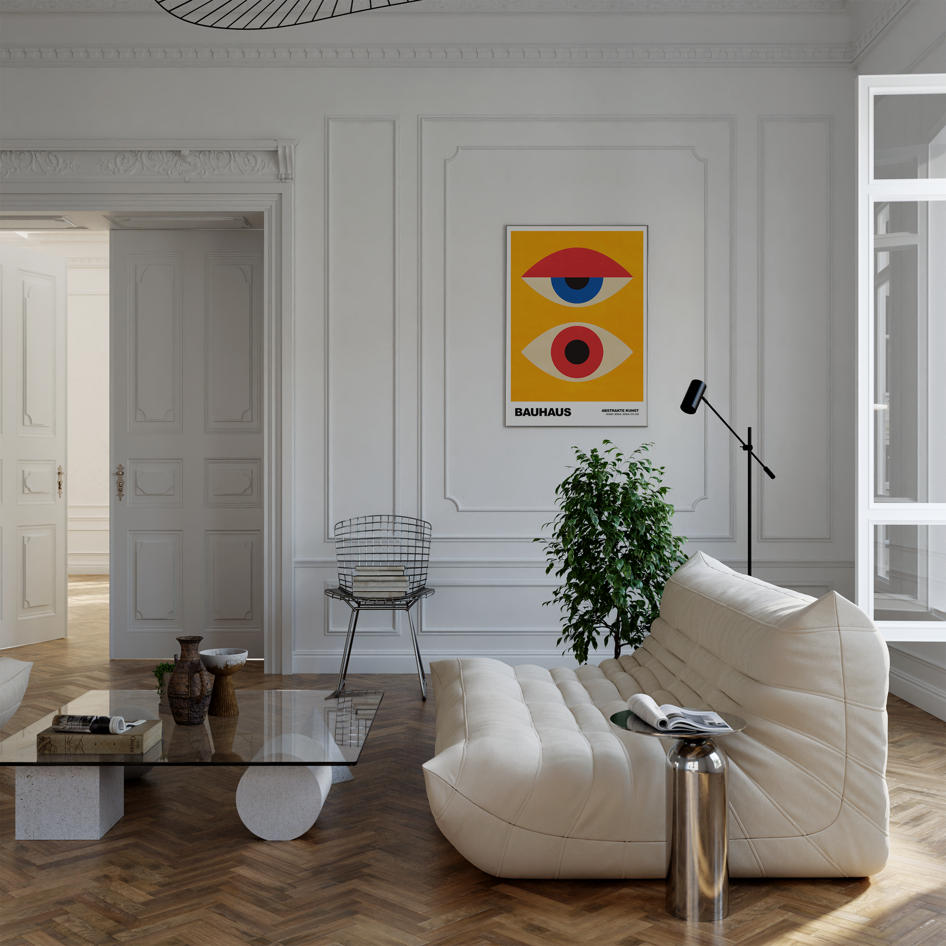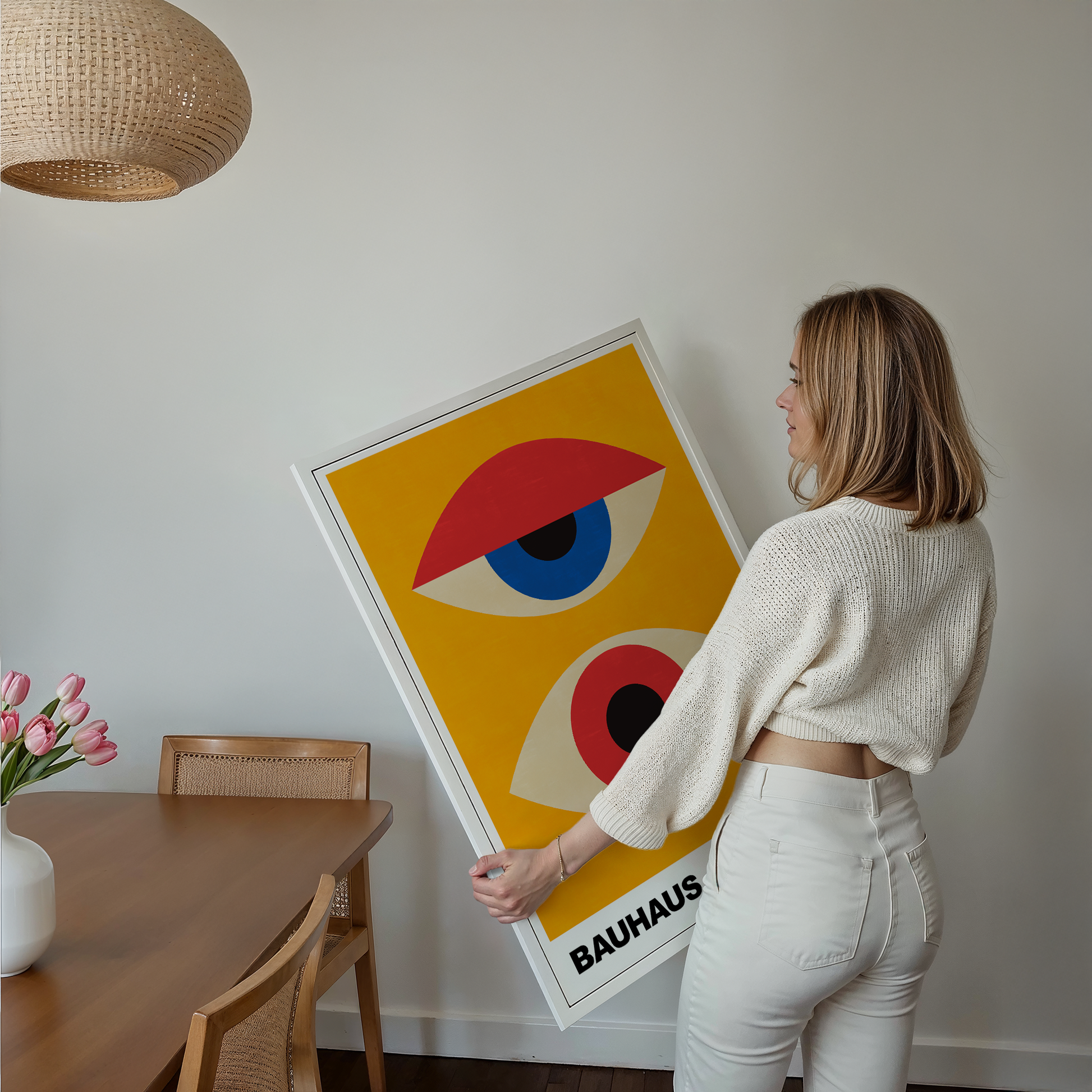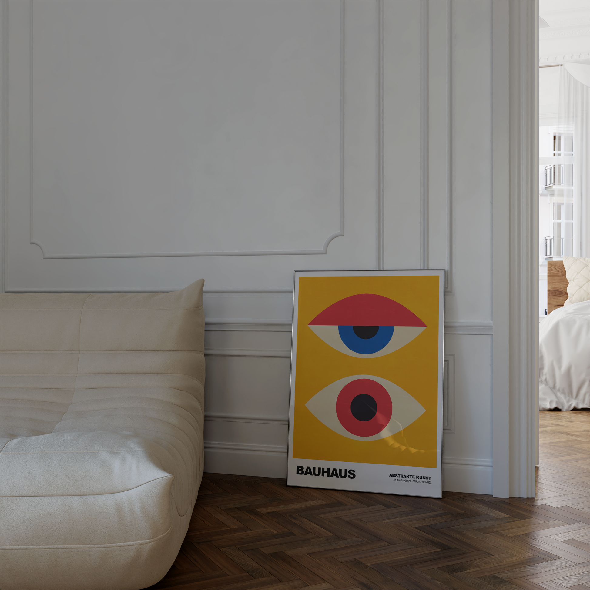 Poster Bauhaus Abstrakte Augen Kunst · Geometrisches Design in Gelb, Rot, Blau · Retro Mid Century Stil · Deko Print ohne Rahmen