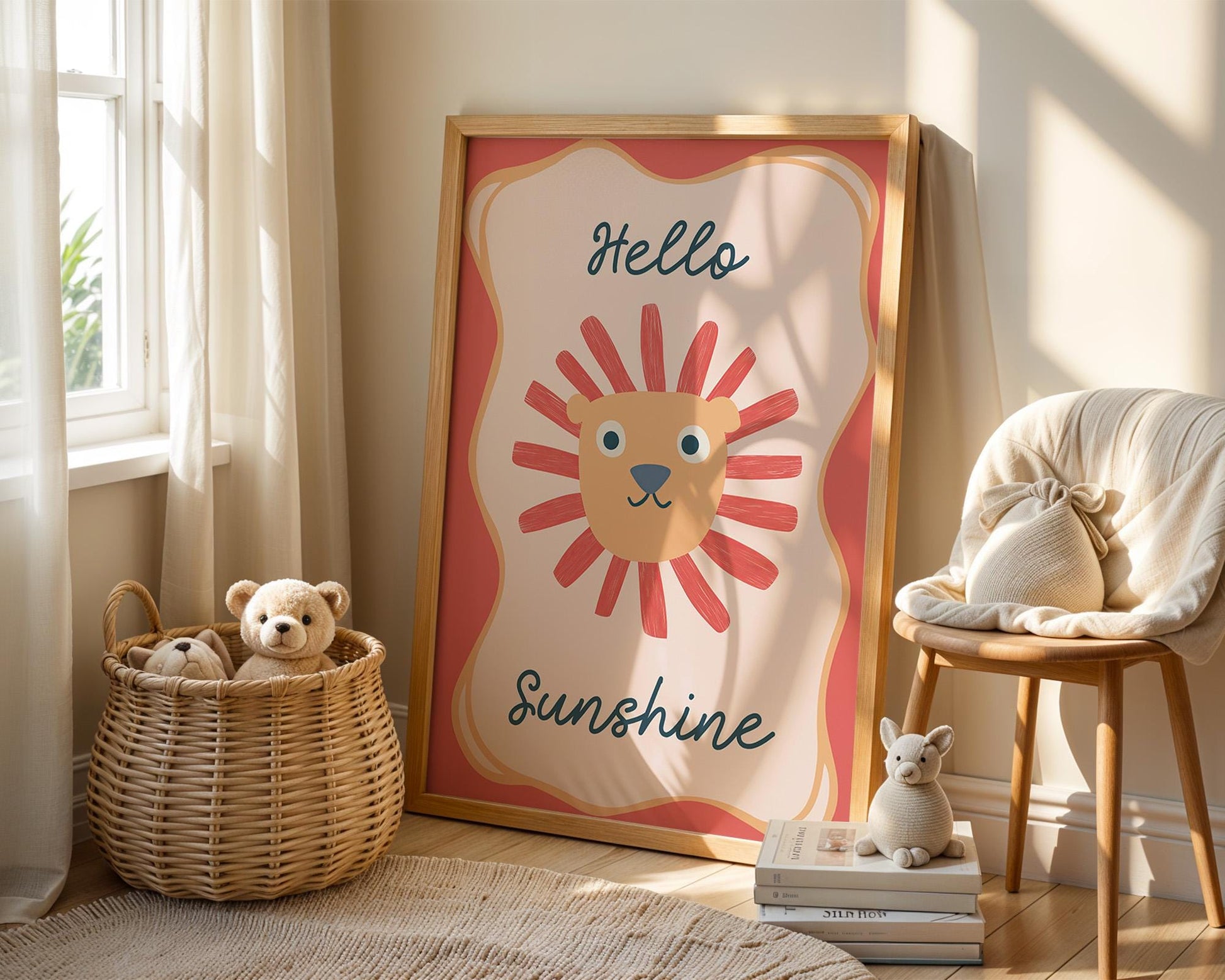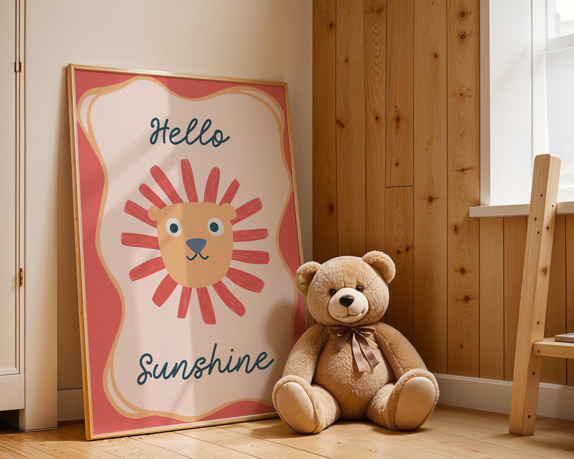 Poster Kinderzimmer Bilder Sonnenstrahlen Blumen Regenbogen Wolke Sonne als Deko Print ohne Rahmen