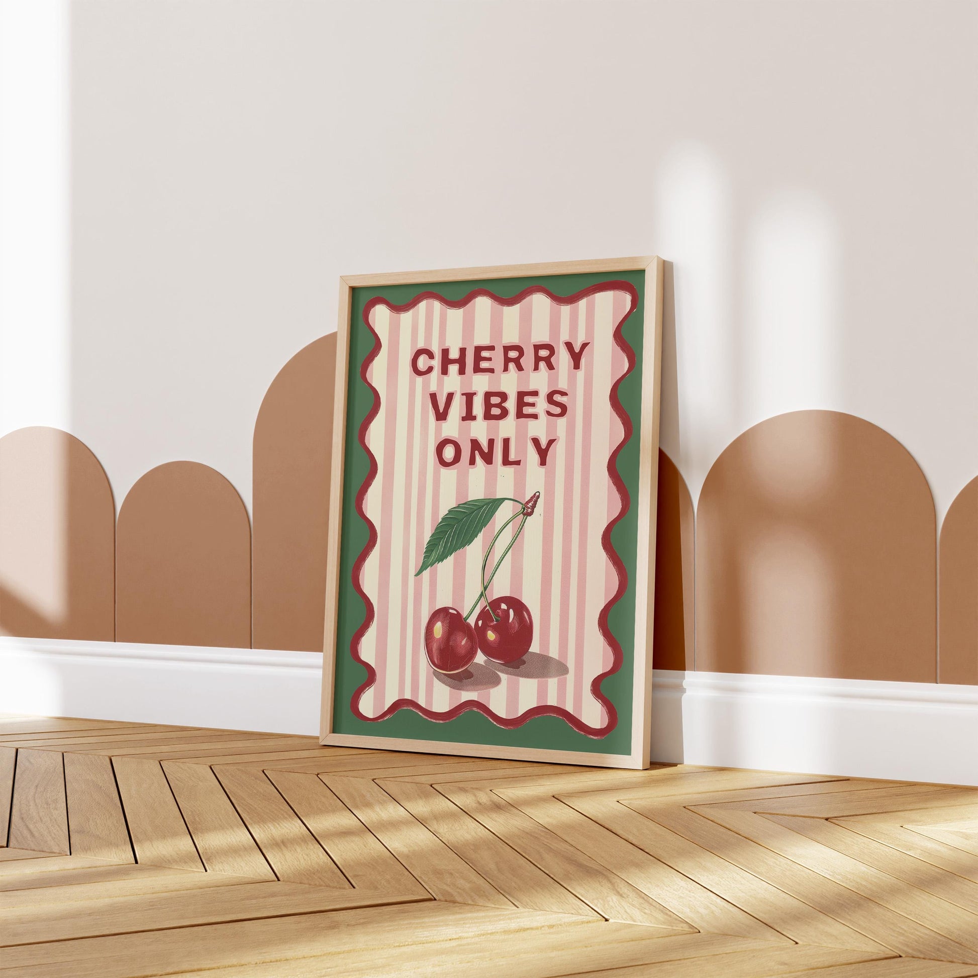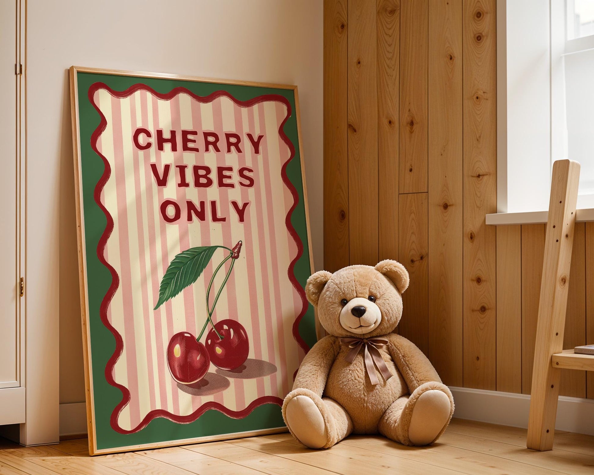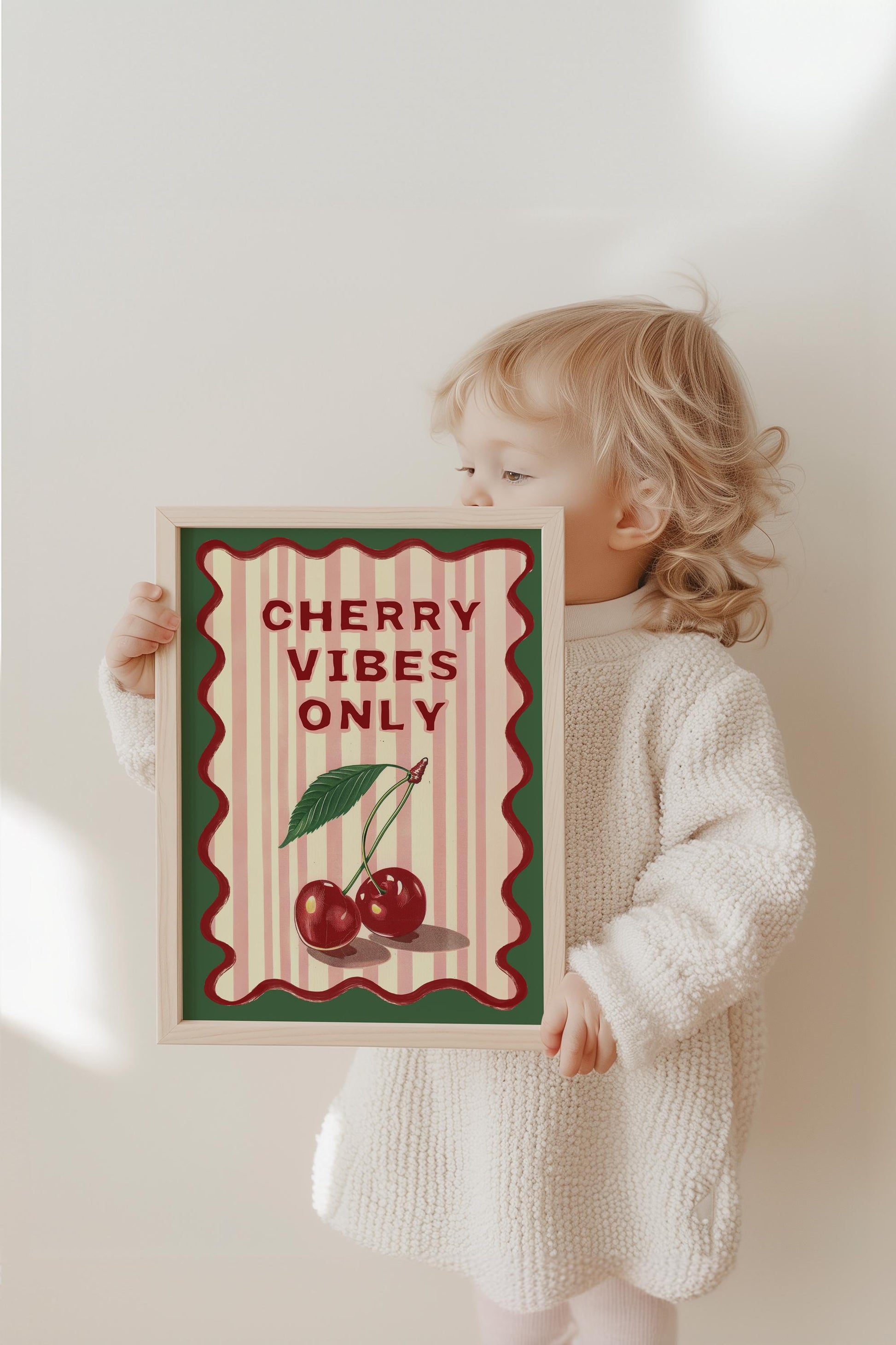 Poster Kinderzimmer Kirschen ยท Cherry Vibes Only ยท Fruchtige Wanddeko im Retro Look ยท Lustiges Spruchposter ยท Deko Print Ohne Rahmen