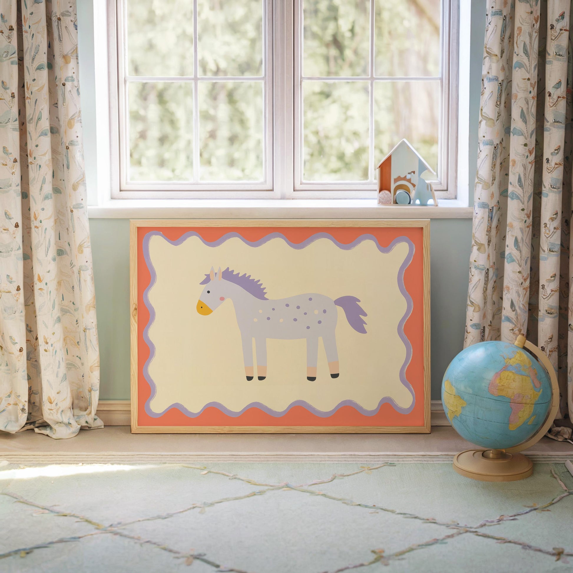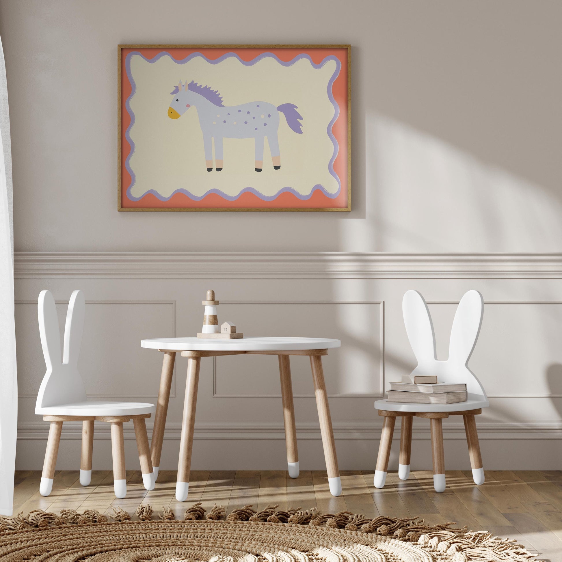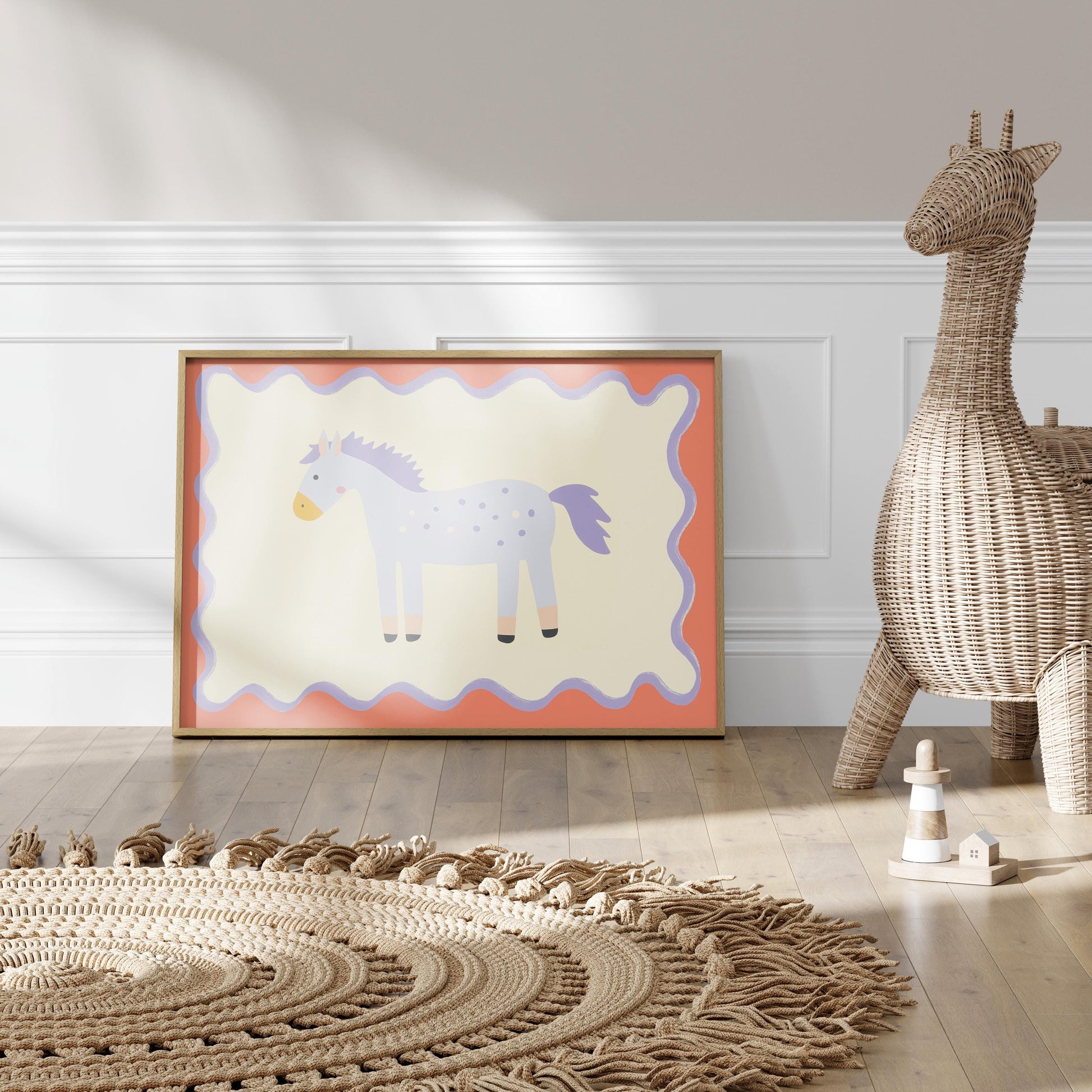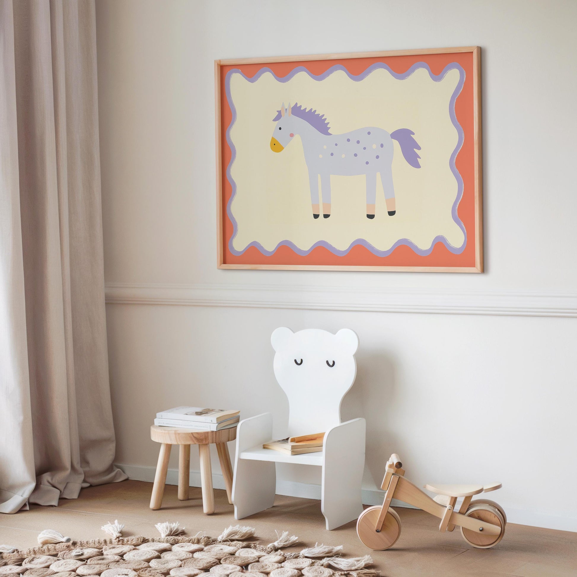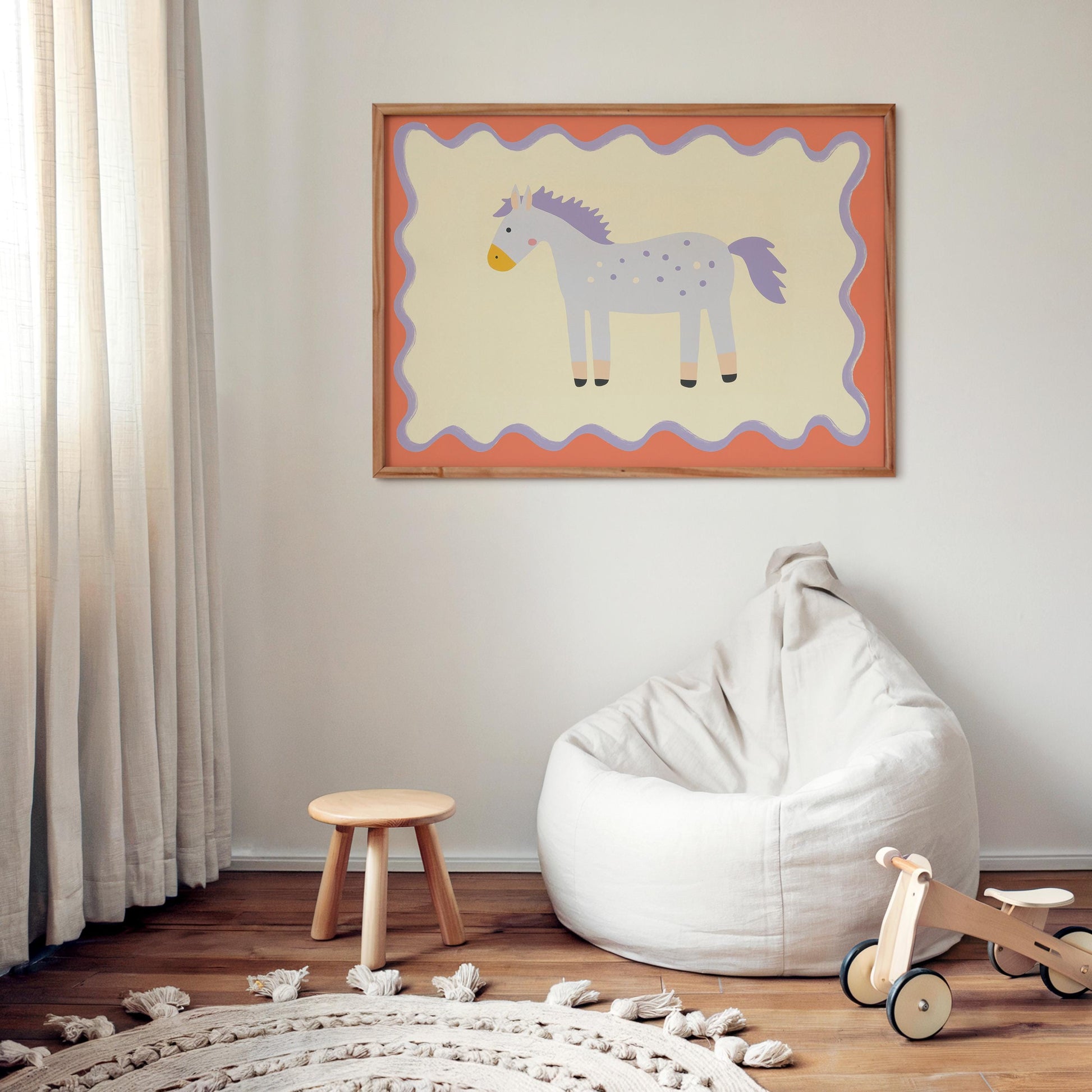 Poster Kinderzimmer Pferd · Lila Pony mit Punkten · Niedliches Tierposter für Mädchenzimmer & Babyzimmer · Skandi Deko · Print ohne Rahmen