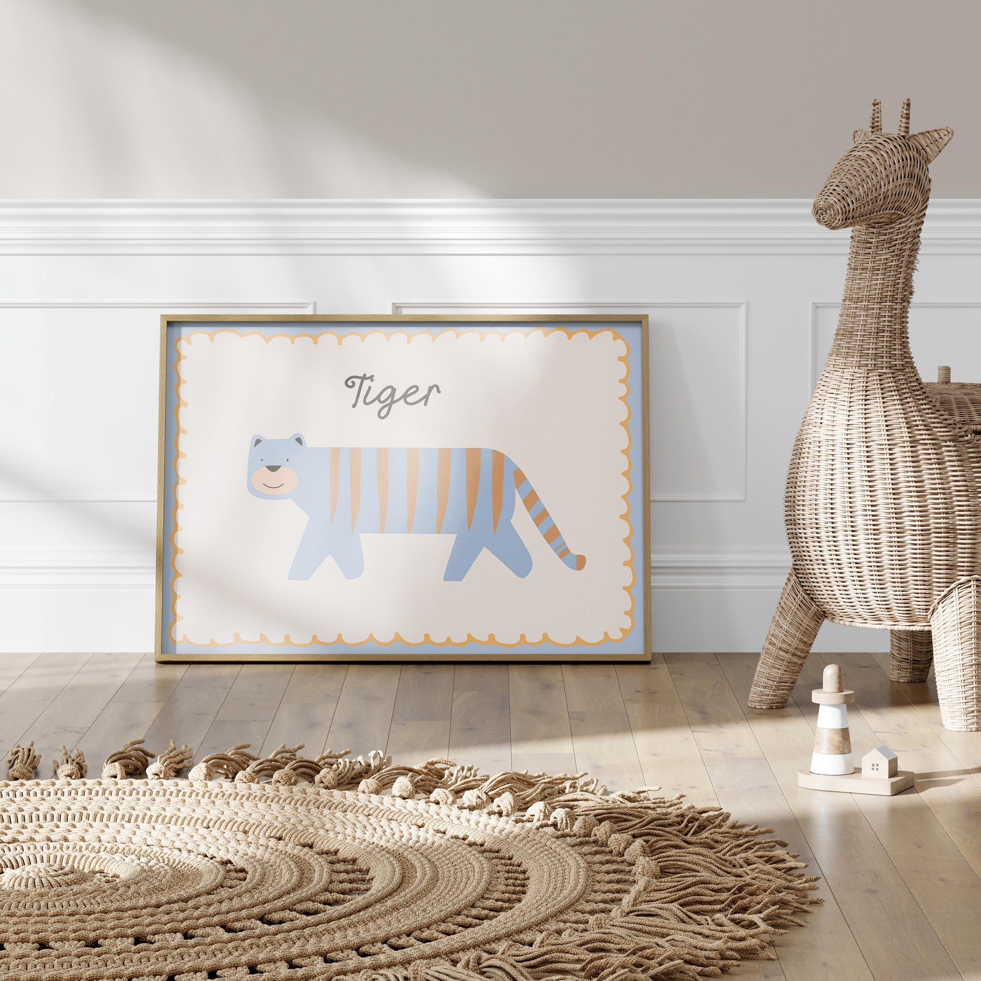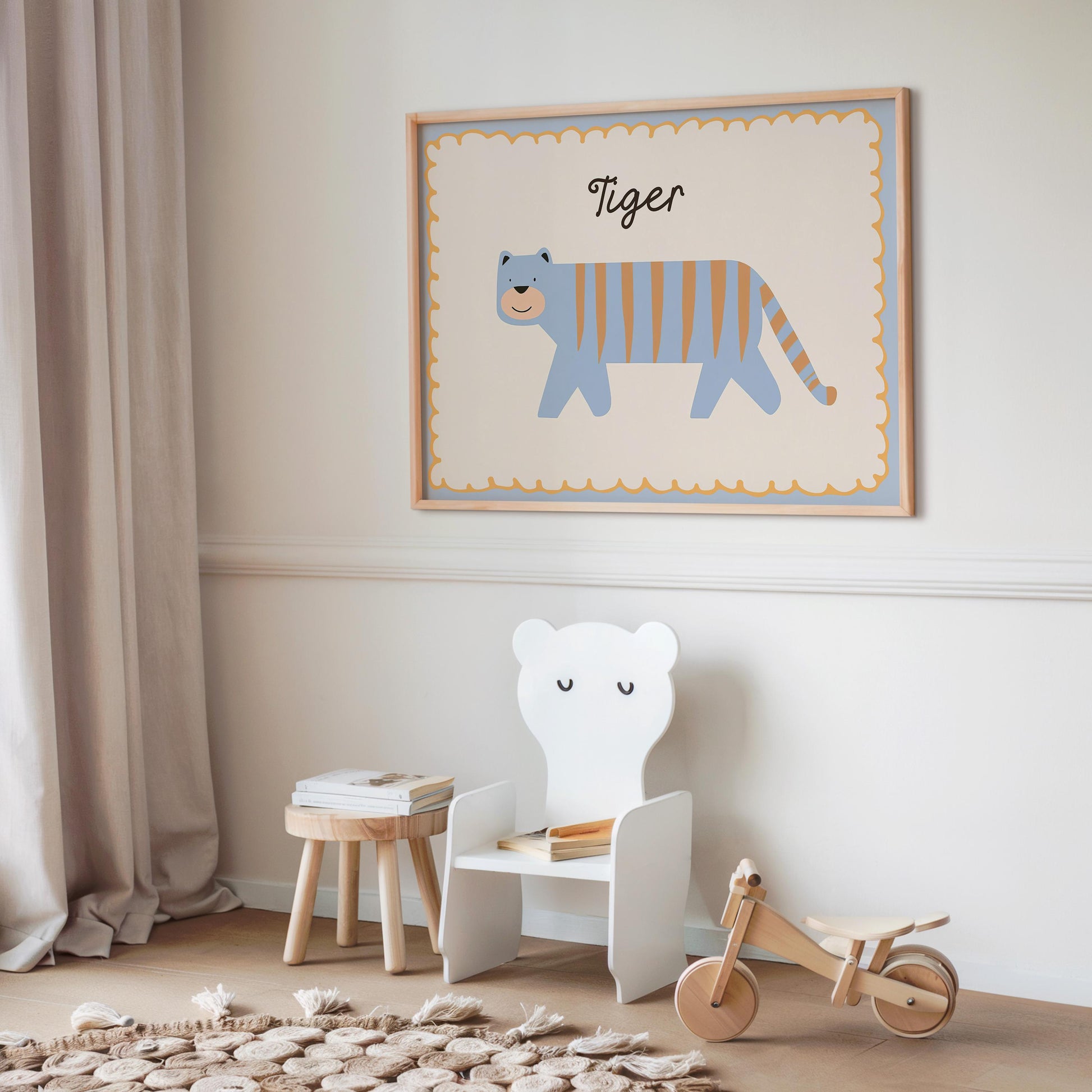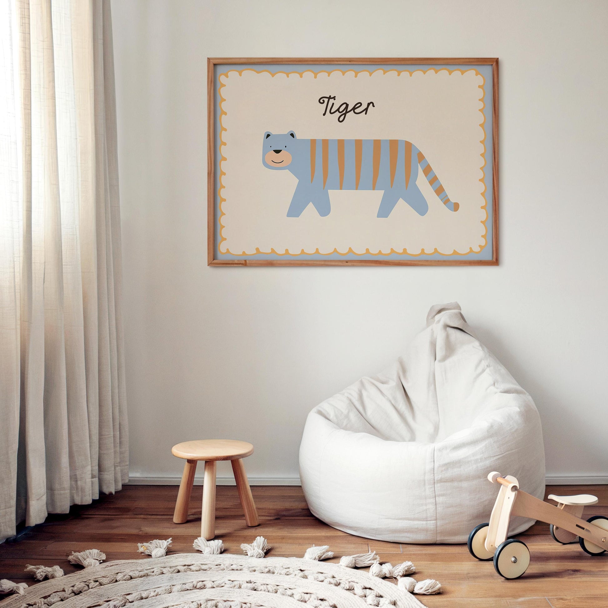 Poster Kinderzimmer Tiger · Süßer blauer Tiger mit Streifen · Tierposter für Jungen & Mädchen · Skandi Dekoprint ohne Rahmen