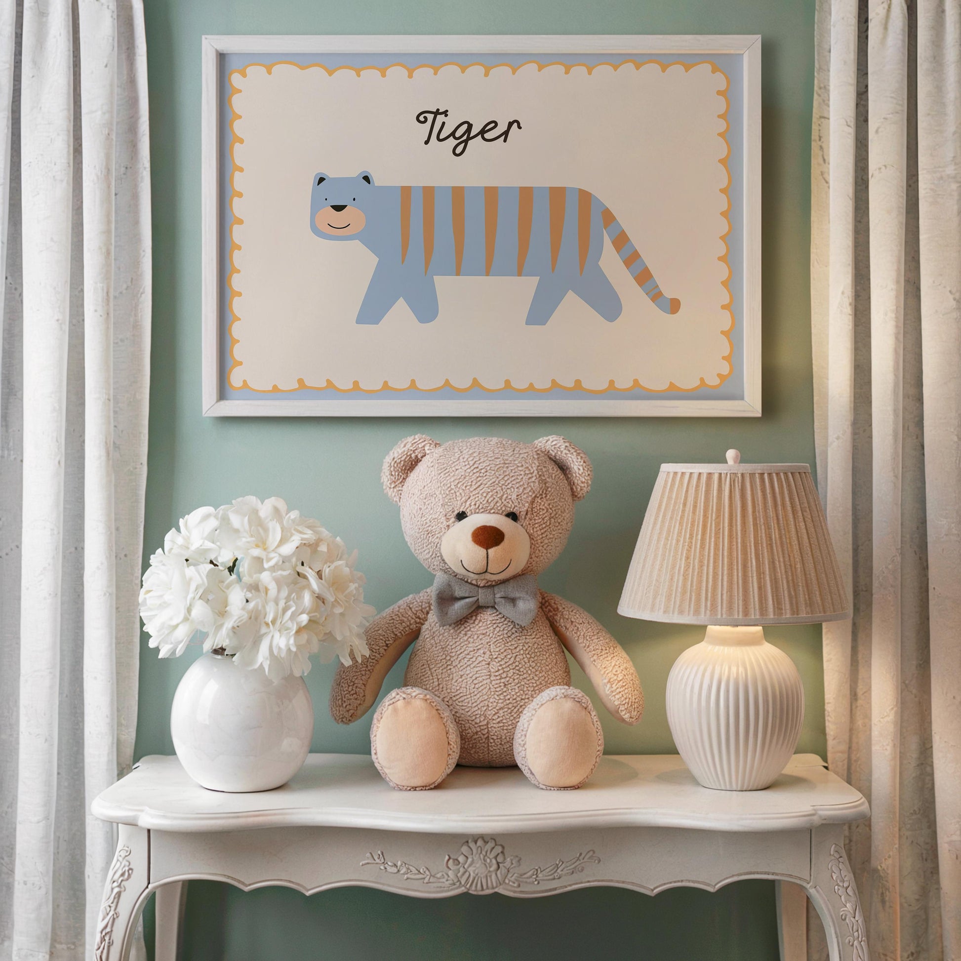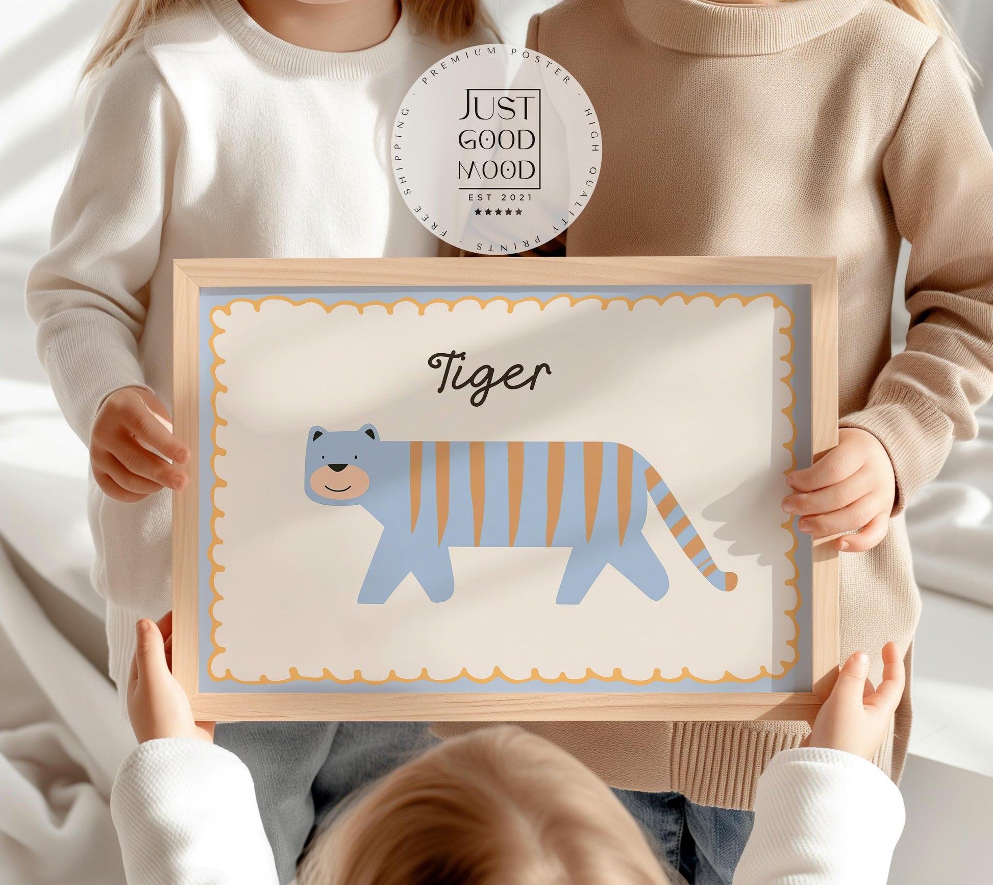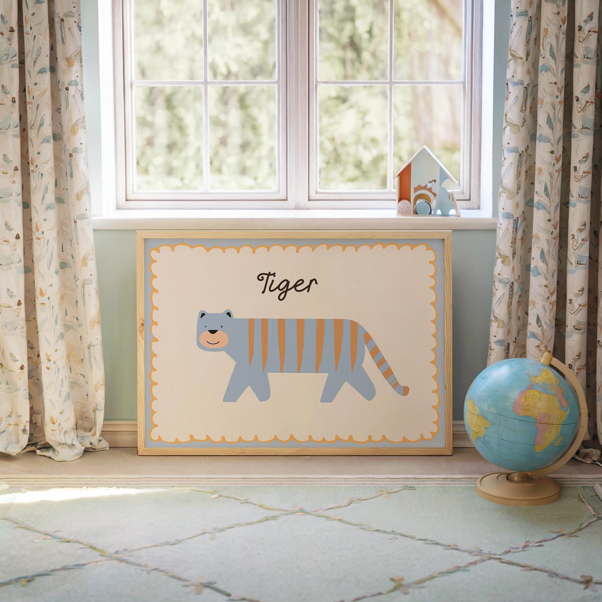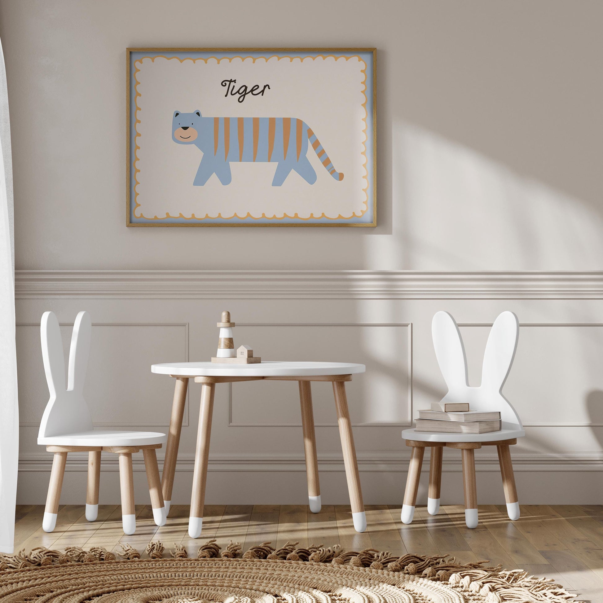 Poster Kinderzimmer Tiger · Süßer blauer Tiger mit Streifen · Tierposter für Jungen & Mädchen · Skandi Dekoprint ohne Rahmen