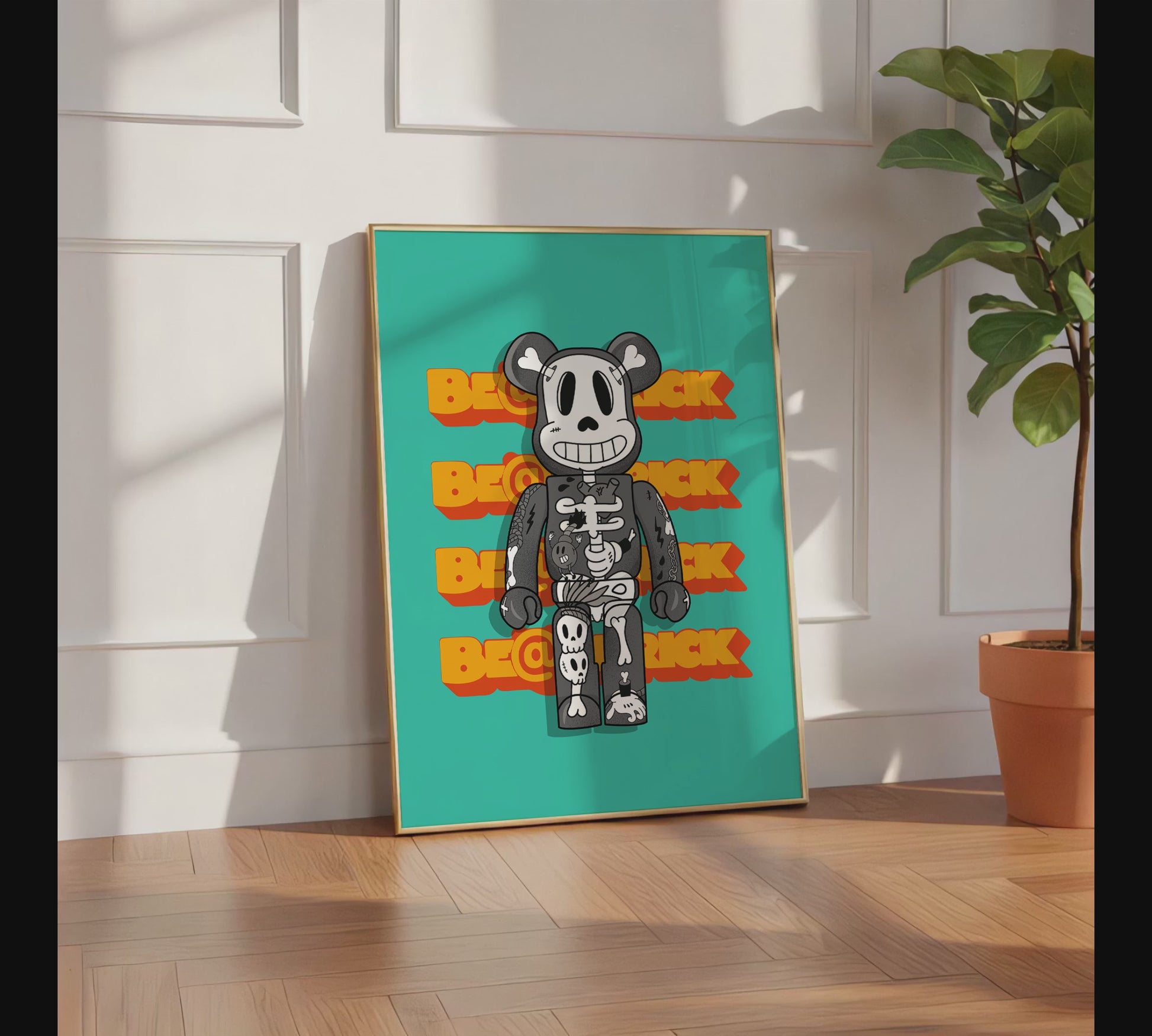 Urban Toy Bear Skelett Poster · Urban Street Art Figur · Pop Art Graffiti Stil · Print ohne Rahmen